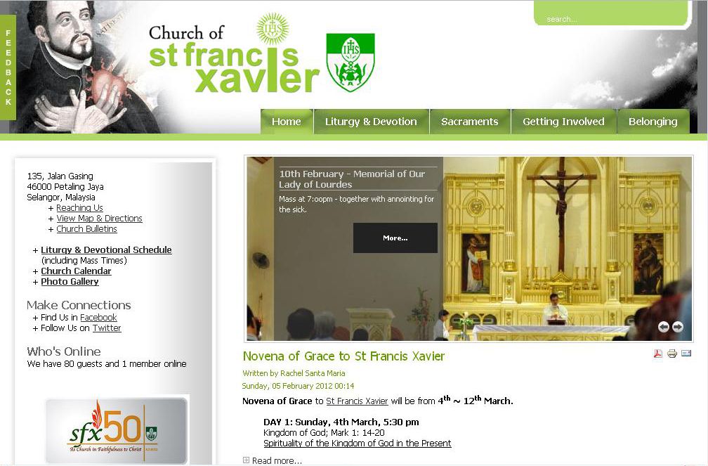Church of St. Francis Xavier is our pro bono project. The church website has two objectives. First, to bring its parishioners closer to Christ and second, to assist the church staff with their daily administrative work. Booking and renting of rooms in the church are managed via the website. It is an intelligent system where the system communicates independently with the parish group leaders without any human intervention, notifying who has placed room reservations for meetings and functions.
